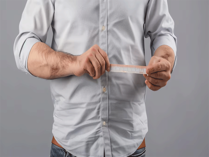 با متر نواری یا نخی، دور ضخیمترین قسمت آلت را اندازه بگیرید.