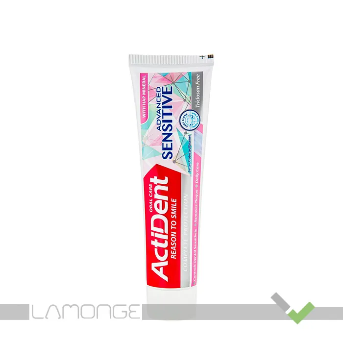 خمیر دندان مناسب دندان حساس Actident مناسب برای افرادی است که دندانهای حساس دارند. تحقیقات بینالمللی نشان میدهد از هر ۸ بزرگسال یک نفر دندانهای حساس دارد. به همین علت خمیر دندان اکتیدنت یک محصول مناسب این افراد است که بتوانند در روتین روزانه مراقبت از دهان و دندانهایشان با مصرف مرتب این محصول علائم حساسیت دندانی را کنترل نمایند. طعم ملایم و در عین حال حس تازگی این محصول یک مراقبت لذتبخش را برای شما ایجاد خواهد کرد. خمیر دندان اکتیدنت مخصوص دندان های حساس با فرمولاسیون ویژه، بهبود حساسیت دندان را تضمین میکند.