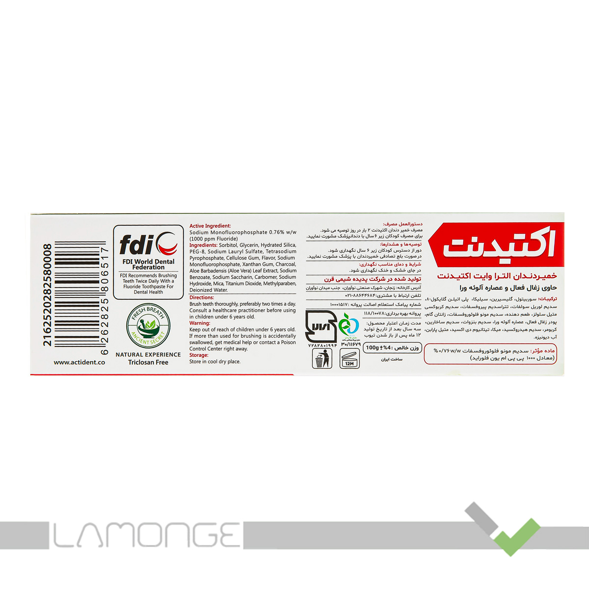 خمیر دندان الترا وایت اکتیدنت حاوی زغال فعال و عصاره آلوئه ورا