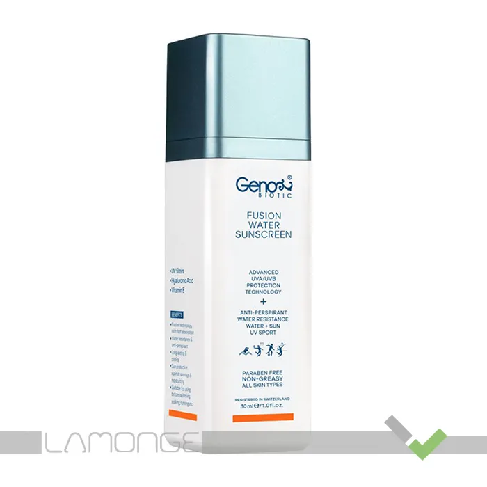 کرم ضد آفتاب SPF50 بی رنگ ژنوبایوتیک مدل Fusion Water مناسب انواع پوست حجم 30 میلی لیتر