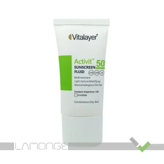 فلوئید ضد آفتاب SPF50 بی رنگ ویتالیر مدل Activit مناسب پوست چرب حجم 50 میلی لیتر
